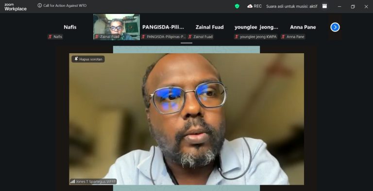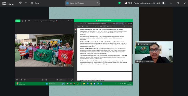 Serikat Petani Indonesia (SPI) bersama Focus on Global Sotuh, Kilusan, Trade Justice Pilipinas, dan Third World Network menggelar Webinar “Internasional: Menuju Transformasi Sistem Perdagangan Global” pada Jumat (27/03/2026) di tengah momentum Konferensi Tingkat Menteri ke-14 World Trade Organization (WTO) di Kamerun. Kegiatan ini menyoroti dampak kebijakan perdagangan global yang dinilai memperdalam kemiskinan dan ketimpangan, melemahkan kedaulatan negara berkembang, serta mendorong privatisasi dan deregulasi yang lebih menguntungkan korporasi multinasional dibanding petani, nelayan, dan pekerja.